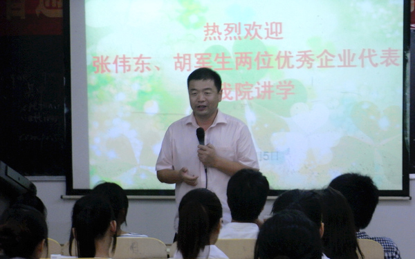 上图为三亚仲谋实业有限公司总经理张伟东先生在给我系师生作报告