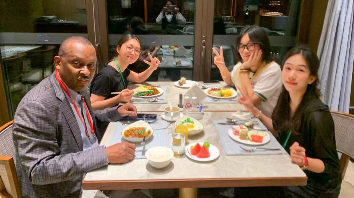 王书歆(右一)和杨碧豪(左二))及与海地大使(左一)共进晚餐