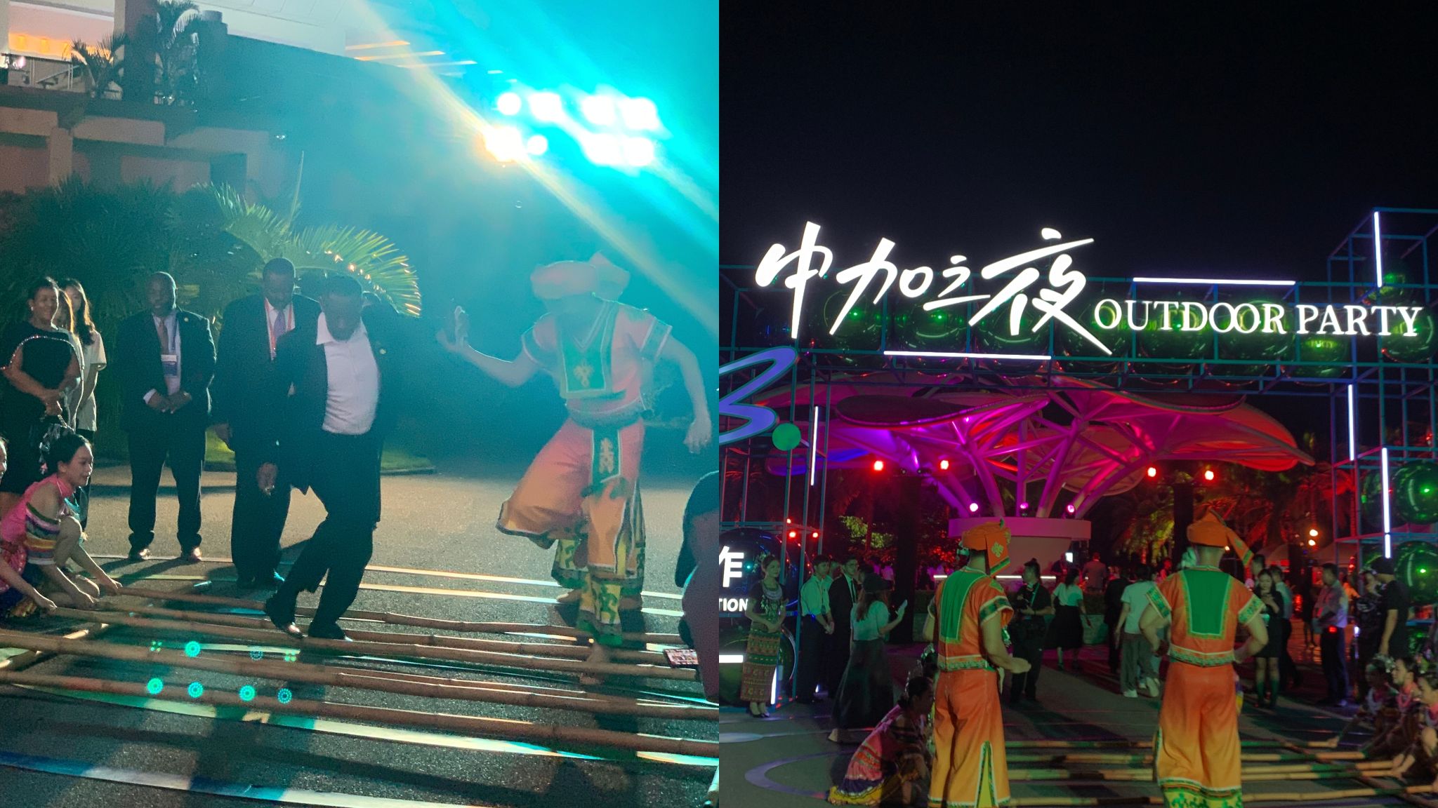 学生志愿者陪同外宾感受中加之夜,体验海南当地文化艺术、品尝当地美食