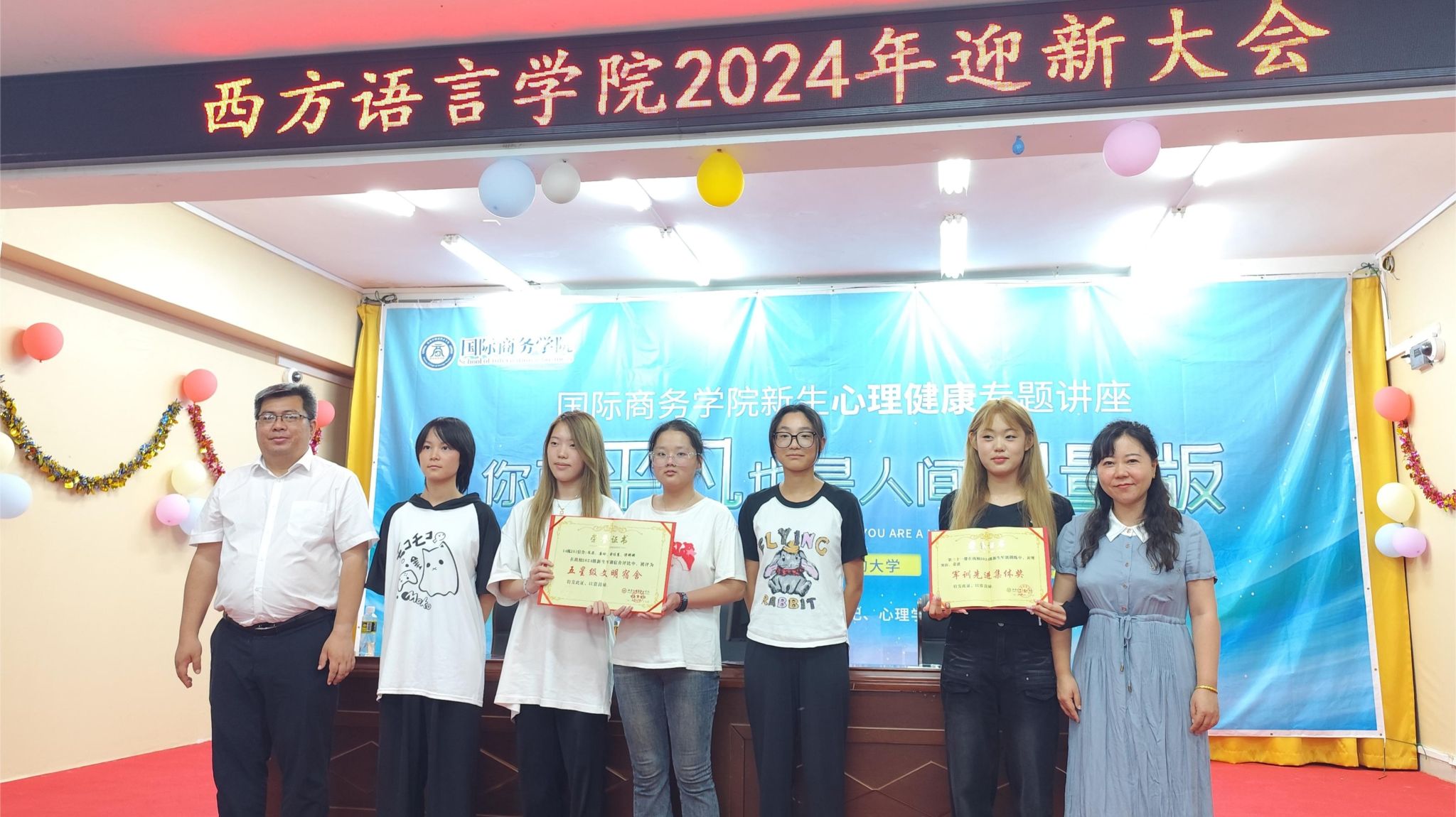 最后,符振忠副书记和刘茂媛院长为我院在2024级新生军训中荣获优秀标兵、军训先进集体奖、五星级文明宿舍的学生颁奖,本次大会在热烈气氛中圆满落幕。