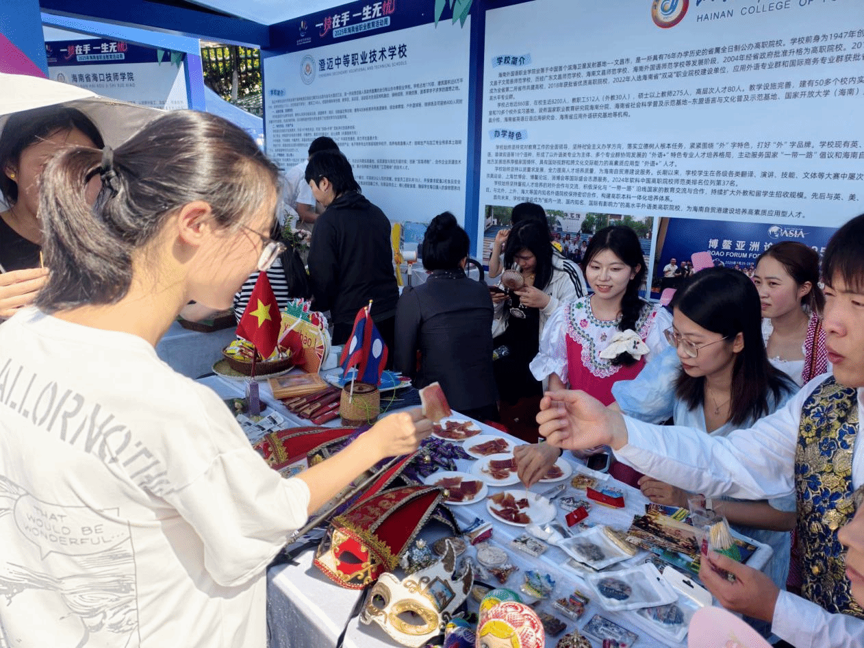 5月17日,以“一技在手,一生无忧”为主题的2025年海南省职业教育活动周在海口市云洞图书馆盛大启幕。全省57所中、高职院校齐聚一堂,展示职业教育成果。开云官网党委委员、副校长苑德宇带队参加,西方语言学院积极协作,通过特色展位、互动体验、成果展示等形式,全方位呈现我院在人才培养、教育教学、校企合作及国际交流领域的突出成就,吸引众多参观者驻足,获得广泛好评。