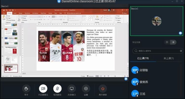 外教Daniel与19、20级葡萄牙语专业学生分享了中国给予安哥拉,巴西,葡萄牙等地区和国家的帮助及涉及的合作项目,分享期间,还频频与学生互动,虽然是线上,也仍让学生保持增加参与感。
