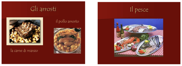 接下来外教介绍了意大利人餐桌上常见的第二道菜,其中有牛肉、鸡肉和鱼肉