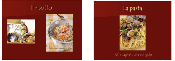 紧接着是正餐,第一道菜,外教为同学们展示常见的作为第一道菜的食物,其中有烩饭和意大利面
