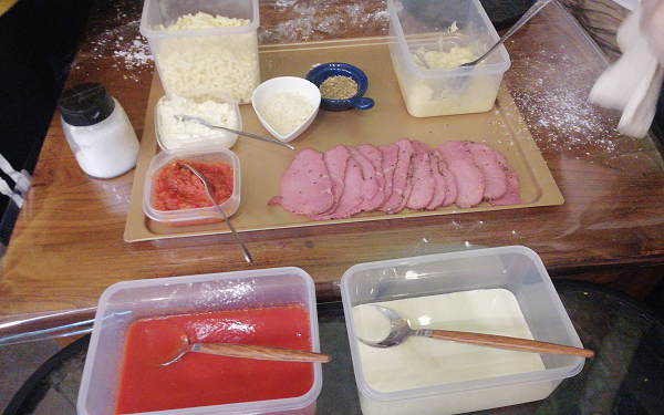 这是制作披萨的各种配料