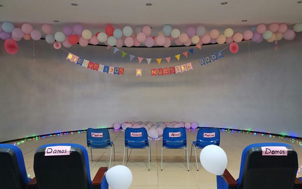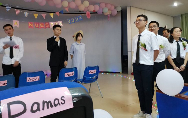 学生亲手制作的西班牙语婚礼欢迎牌