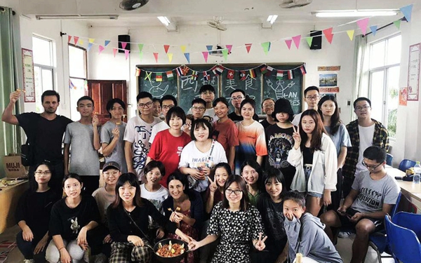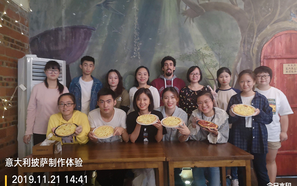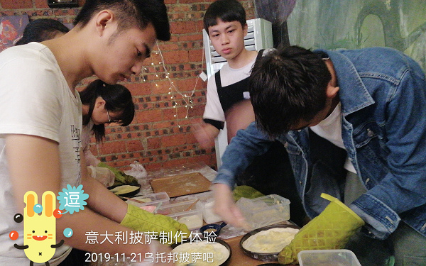 意大利语专业全体同学来到乌托邦披萨吧准备亲手制作披萨