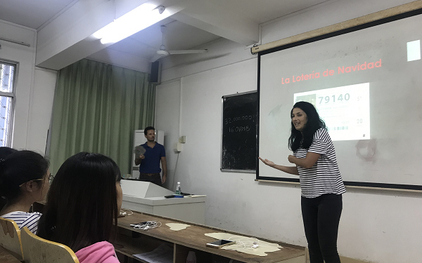 罗西欧外教为同学们介绍西班牙圣诞节。