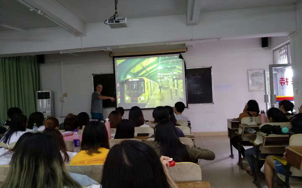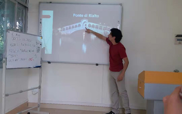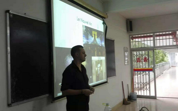 意大利语外教:Marco马可, 来自意大利美丽的西西里岛。会讲法语和英语,同时在学中文,热爱中国文化,喜欢海南岛。他年轻有活力,为人幽默,课堂上总能调动学生的学习积极性,课后也与学生打成一片,创造各种机会锻炼学生的口语,深受学生的喜欢,是一名责任心强和热爱学生的好老师。