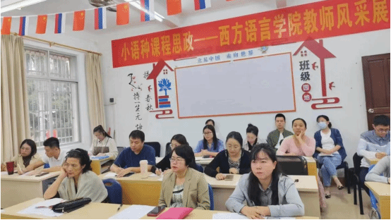 西方语言学院“小语种课程思政”教师风采展课堂指导专家和老师们认真观摩
