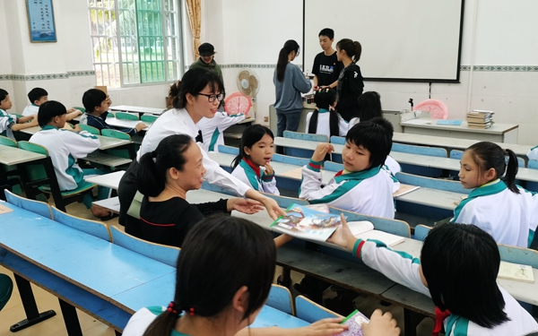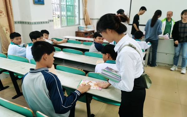 大家在教室里与学生们进行了亲切友好的交流,并给他们赠送了我系第三党支部带来的相关学习用具,希望他们能够再接下来的日子里克服困难,努力学习,争取早日成为新时代的青年力量。