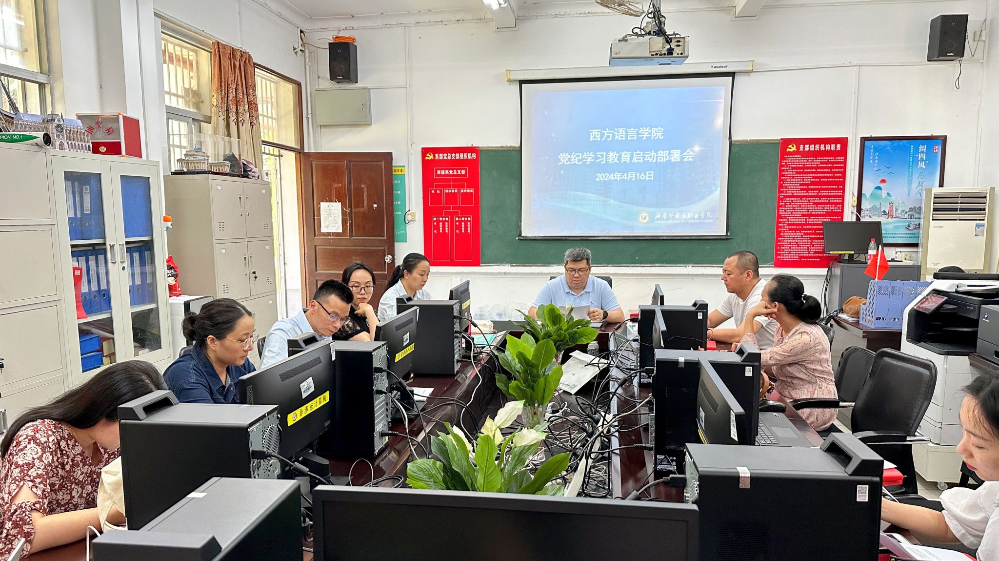 4月16日下午,西方语言学院党总支在学院会议室召开党纪学习教育启动部署会。西方语言学院全体党员教师参加会议,党总支副书记符振忠同志主持会议并部署相关工作。