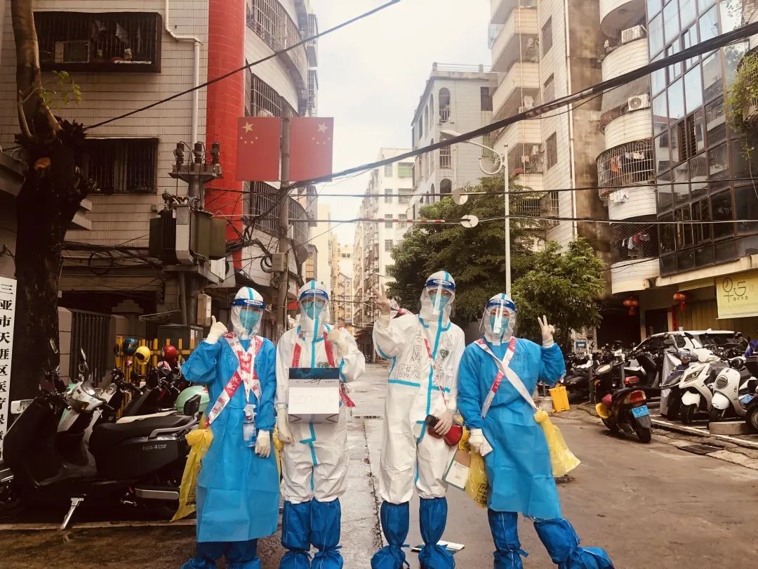 我记得有一次,我换好装备,一个医护人员拉着我说:“姐一定要天天看到你。”这场疫情,让我们结识和相遇,成为了战友和家人。病毒无情人有情,有一天,我们一定会打败新冠,让更多的人获得幸福生活。有一次入户的时候,我回到了我的初中学校,我认出了以前教过我的老师们,虽然时间很长,他们也不记得我了,但我记得他们。他们以前的学生也长大了,换上一身防护服站出来保护人民。一场疫情也让我结识了很多志同道合的朋友一同抗击新冠疫情,更有了勇气,明白了团结一致就是我们打败疫情的重要力量!
