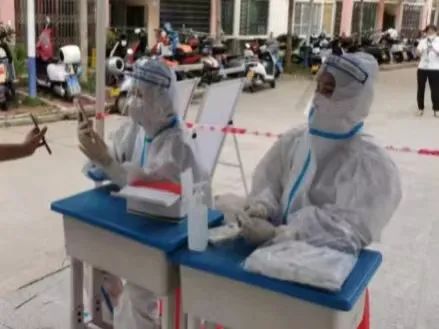 早晨5点半起床,简单洗漱完毕后,我便赶往五指山市锦绣花园小区广场集合工作。大家集合完毕后,队长开简单的小会强调工作注意事项,有问题打报告,最后分配好任务。大家紧急穿好防护服、隔离衣、手套、戴N95口罩、隔离面罩等,整装完毕后,我就快速到自己的工作岗位。在此次的疫情防控工作中,我和其他工作人员一起负责维持秩序;提醒居民准备好健康码、身份证进行扫码;搀扶老人走路和上下楼梯;给居民测量体温。在居民完成采样后,我会在出口给他们发完成核酸检测的“雷公马”贴纸,表扬他们积极完成核酸检测,他们的一声声”谢谢,辛苦了”让我感到很欣慰,我的付出是值得的!