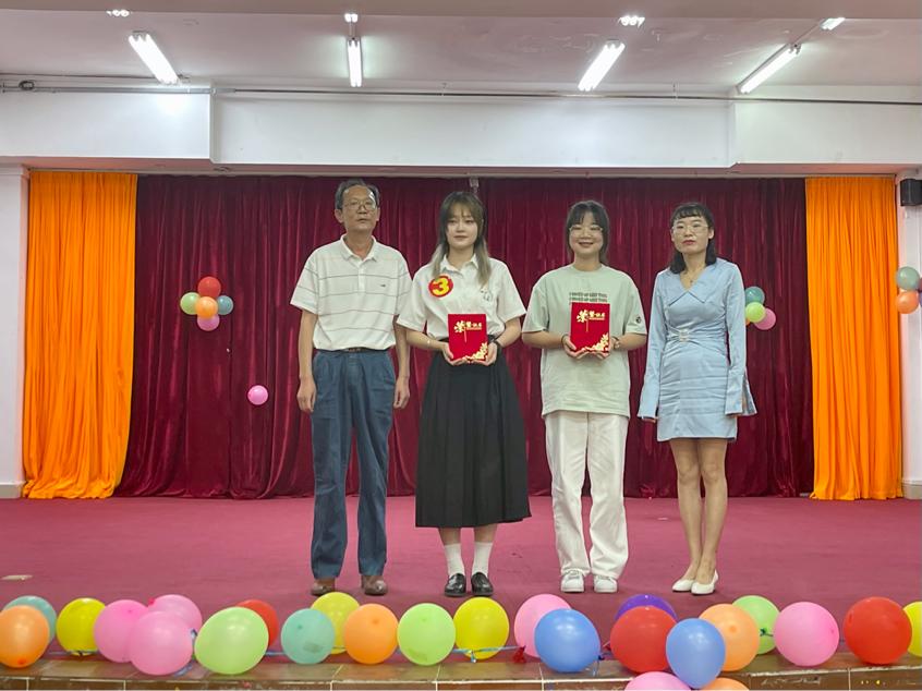 △喻娟老师和游凡渺老师为获得三等奖的选手代表们颁发荣誉证书
