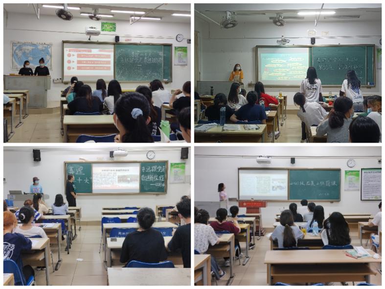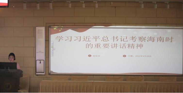 △英语系第三党支部支部书记、团总支书记张琼英带领学生党员、团学干部、团员学习习近平总书记在海南考察时的重要讲话精神