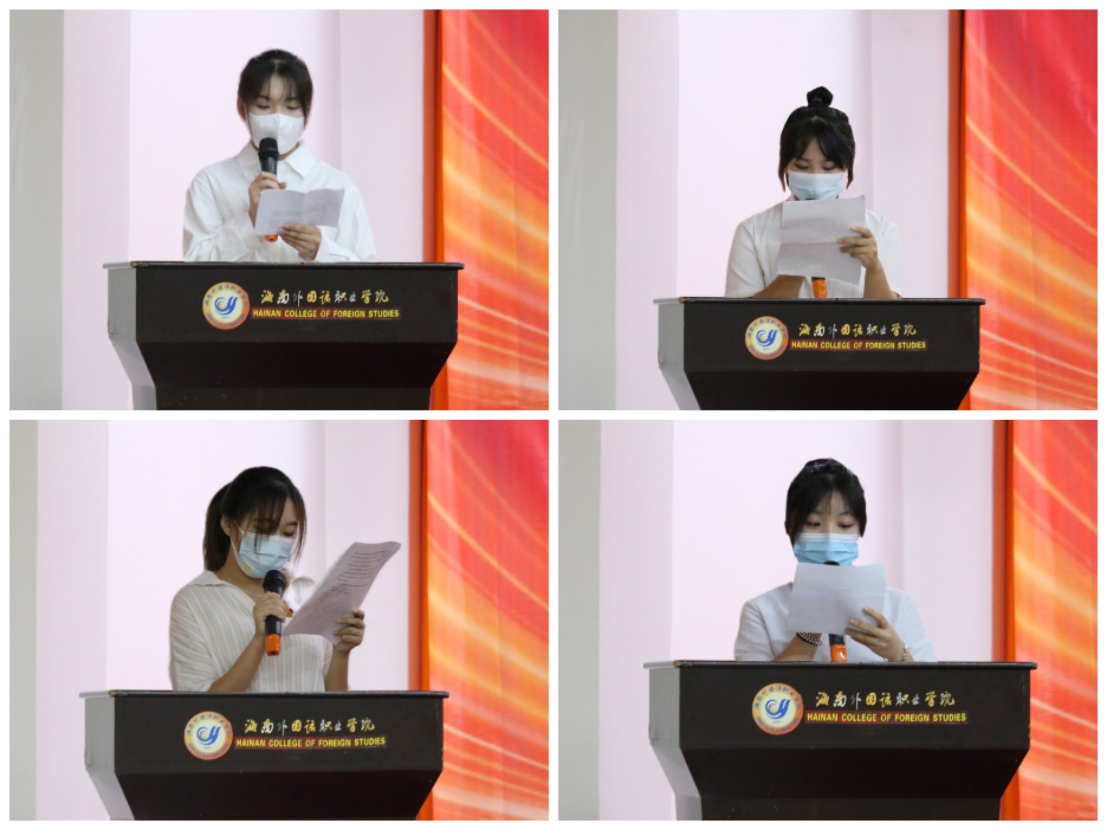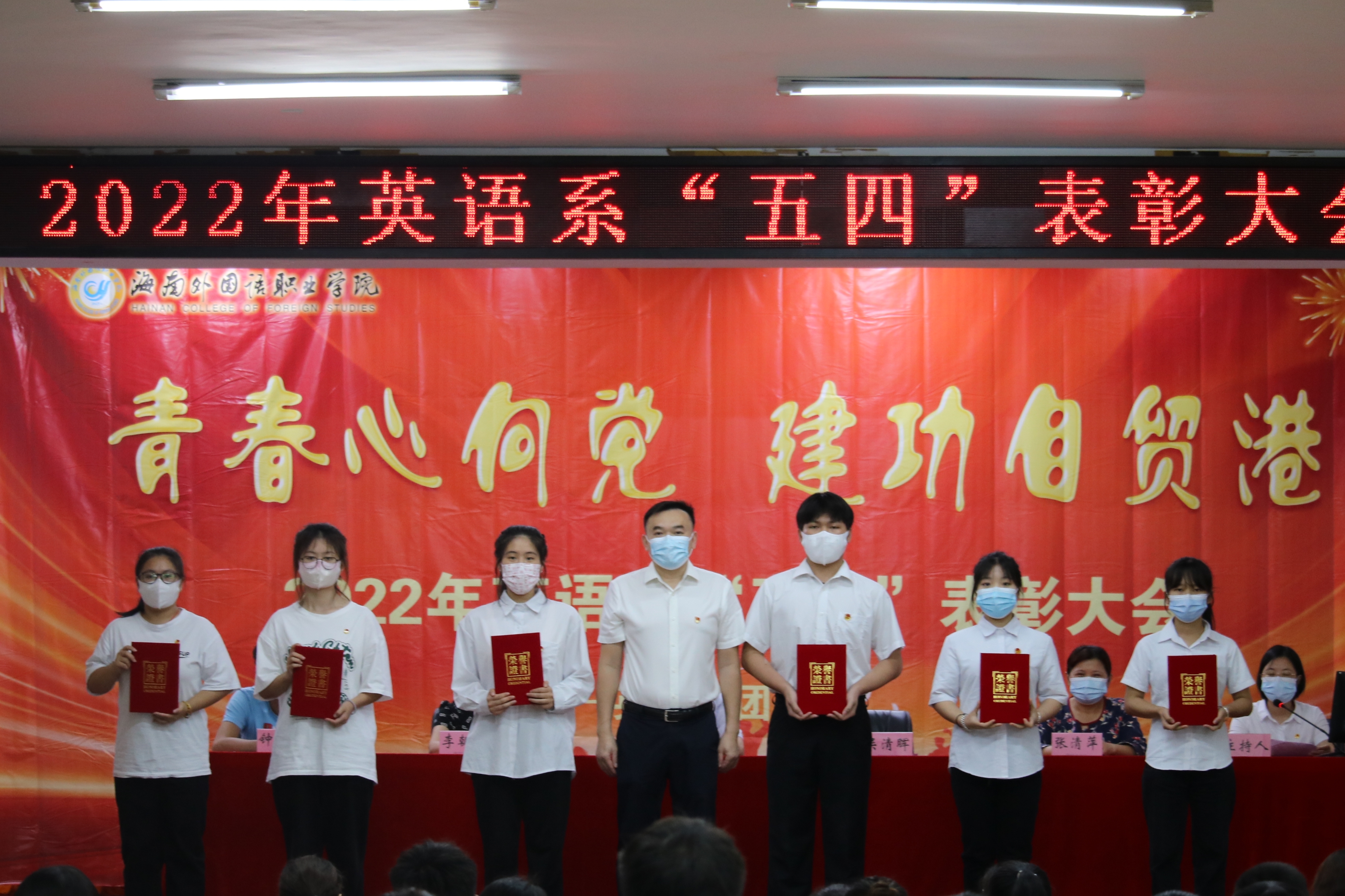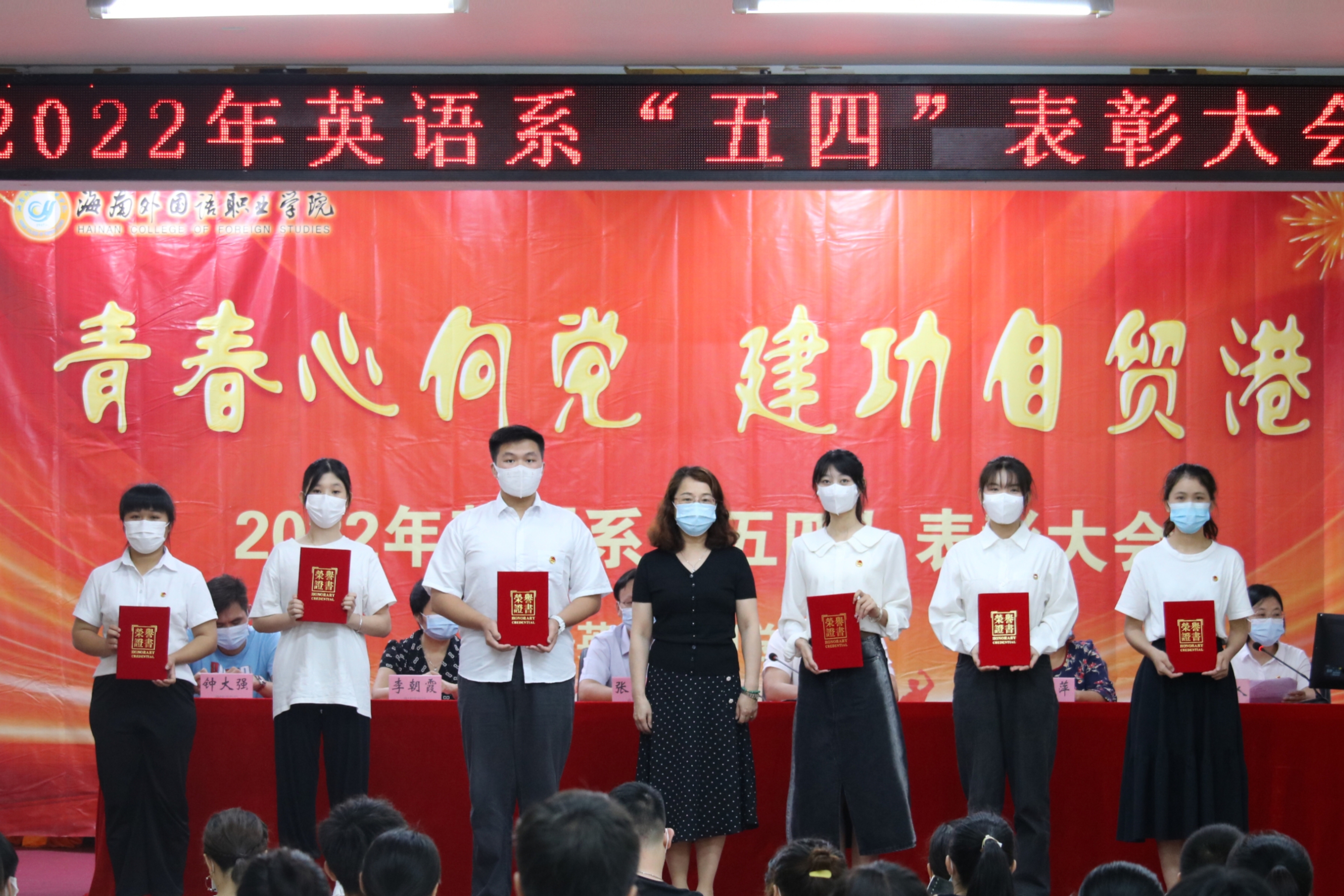 为认真学习贯彻习近平总书记系列重要讲话精神,深入开展党史学习教育,坚持“以党建带团建,以团建促党建”的工作思路,扎实推进我系共青团建设,落实从严治团要求,切实增强共青团员和广大青年的先进性和荣誉感。2022年5月6日晚8点,英语系在多功能报告厅隆重举行“青春心向党,建功自贸港”五四表彰大会。学院团委书记张桓桓、英语系党总支副书记吴清晖、英语系副主任张清萍、英语系副主任李朝霞、英语系学生科科长钟大强、英语系团总支书记张琼英、英语系教研室各主任、各班辅导员及此次受表彰的各位代表等130余人参加此次会议。