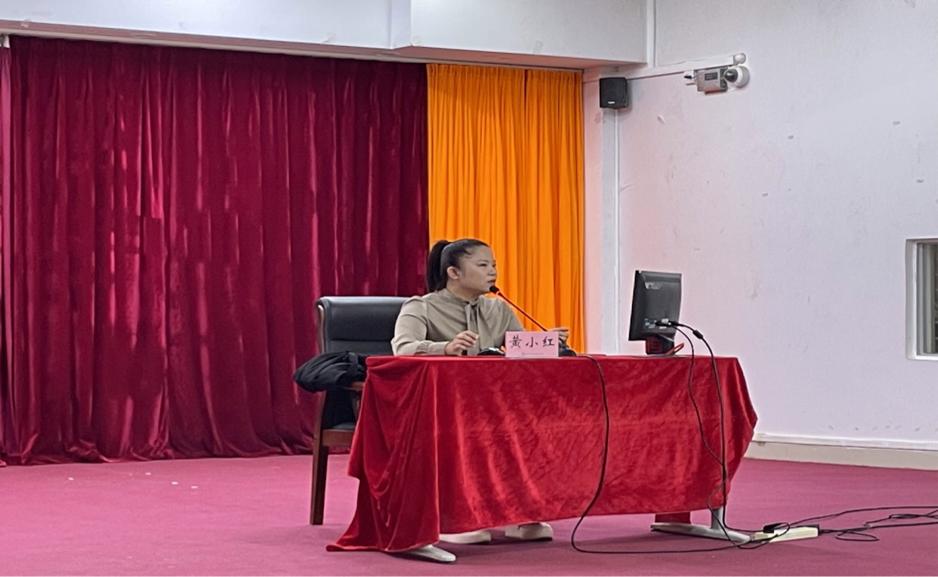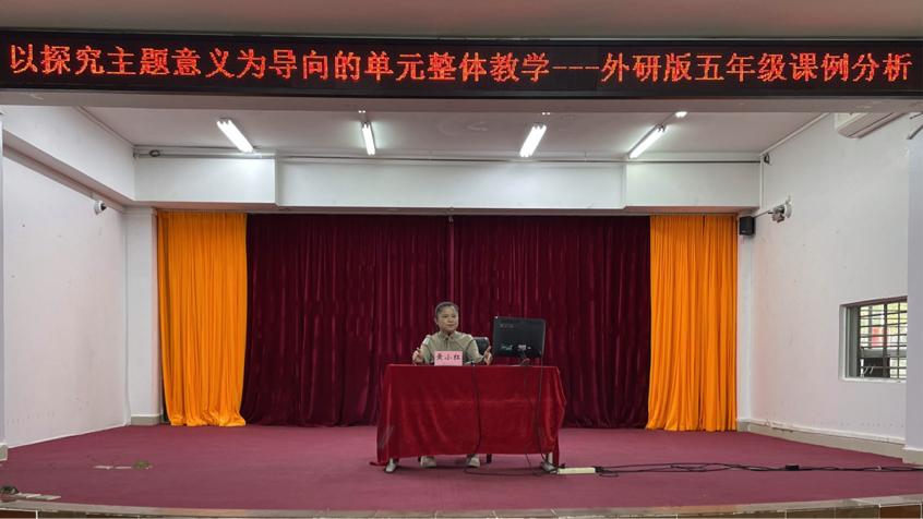 2021年11月25日下午,“海南省省级骨干教师”,现任琼海市教育局小学教研室英语教研员——黄小红老师,在我院图书馆多功能报告厅为英语系师生做了题为《以探究主题意义为导向的单元整体教学——外研版五年级课例分析》主题讲座。英语教育教研室主任郑一新老师主持本次讲座,20级英语教育全体班级出席此次讲座。