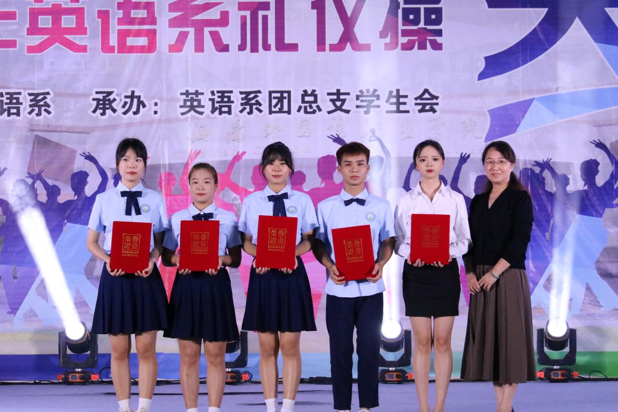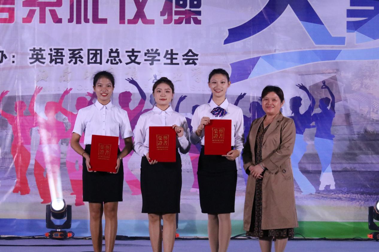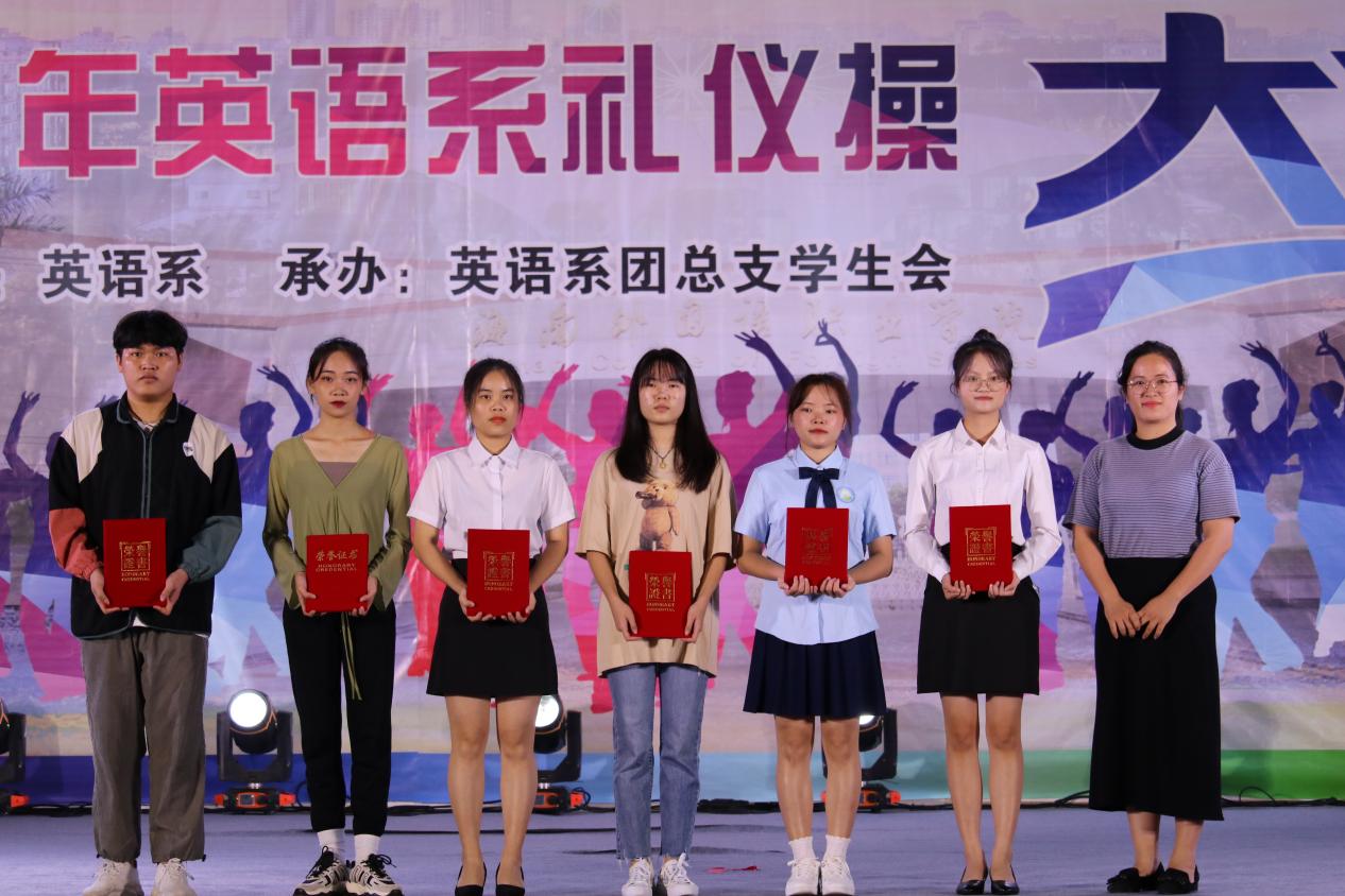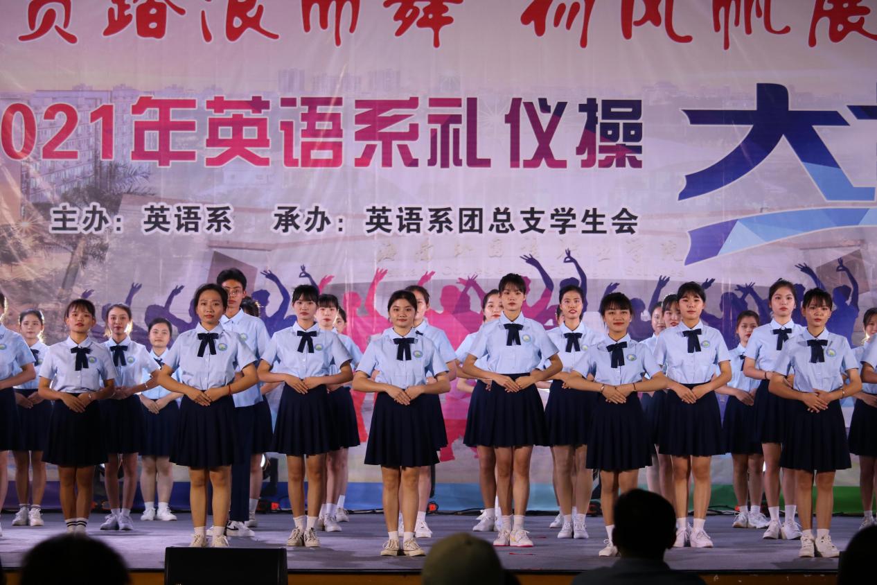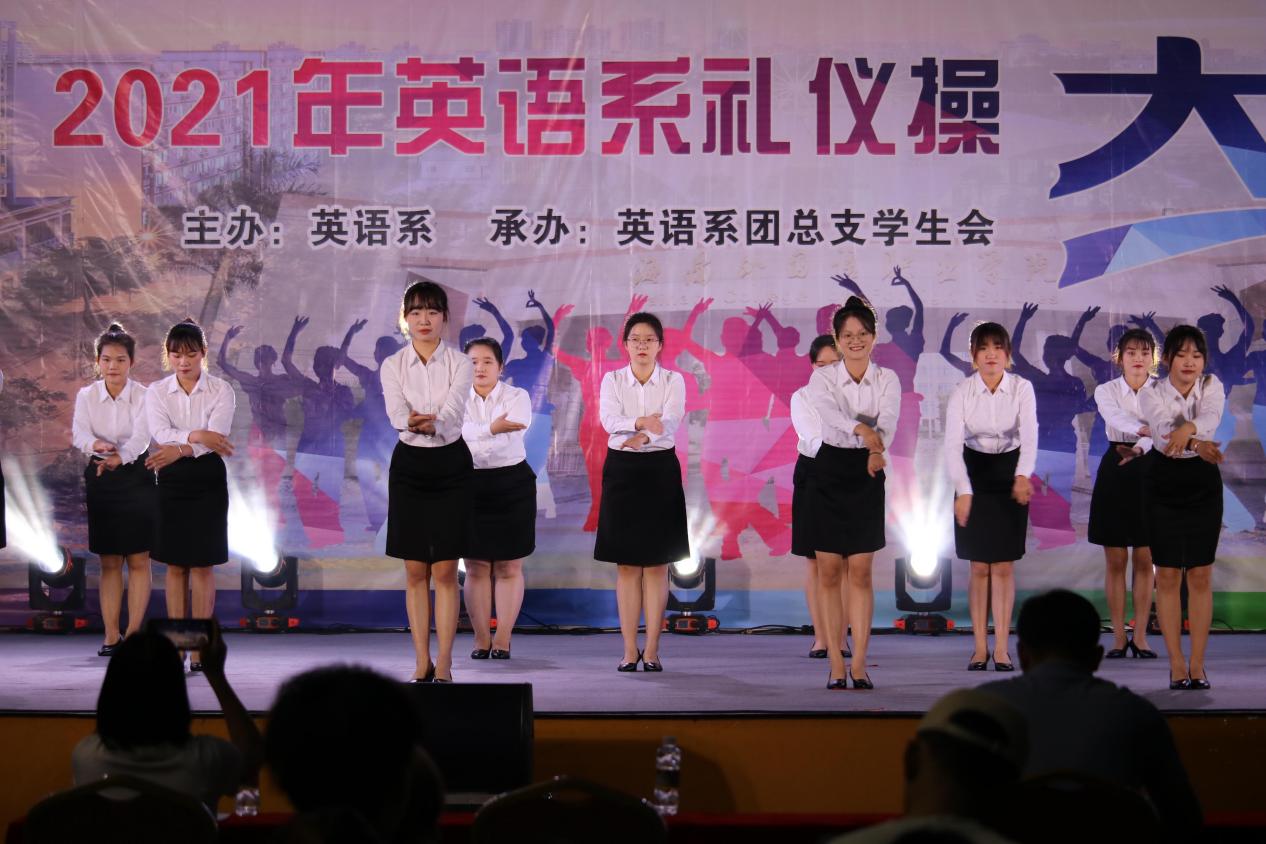 为进一步提高英语教育专业学生的职业素养,营造积极向上、健康文明的校园文化氛围。11月14号晚,英语系在体艺馆举行“迎自贸踏浪而舞、扬风帆展专业素养”礼仪操大赛。英语系党总支副书记吴清晖、英语系副主任张清萍、部分班级辅导员及班主任出席此次大赛。英语教育专业教研室主任郑一新副教授、应用英语专业教研室主任李朝霞副教授、基础教育教研室主任陈春妮副教授及学前教育专业教研室主任杨丹老师担任本次大赛评委。
