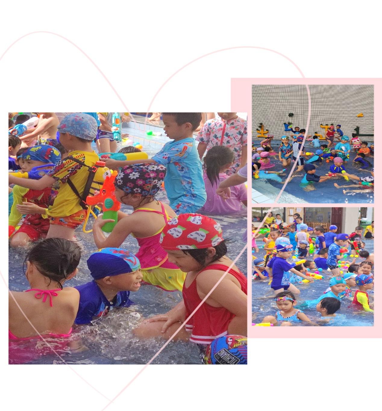 瞧,幼儿园的泳池里的孩子们一起嗨翻天,一场夏日溪水狂欢正在进行!在老师和志愿者们的保护下,小朋友们尽情地玩耍,脸上的笑容都如同花儿一样灿烂。
