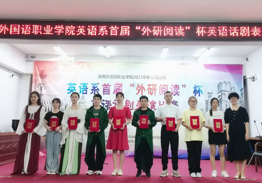 作为英语系2021年职业教育活动周的重要项目之一,此次话剧表演比赛得到了外语教学与研究出版社“外研阅读”平台的大力支持,是本学年《英语阅读》课程教学的延伸和拓展,也是“外研社—海外院大数据外语阅读研究基地”成立后举办的首场活动,旨在检验英文原著阅读的教学效果,提高学生的英语的听说水平和学以致用的能力。