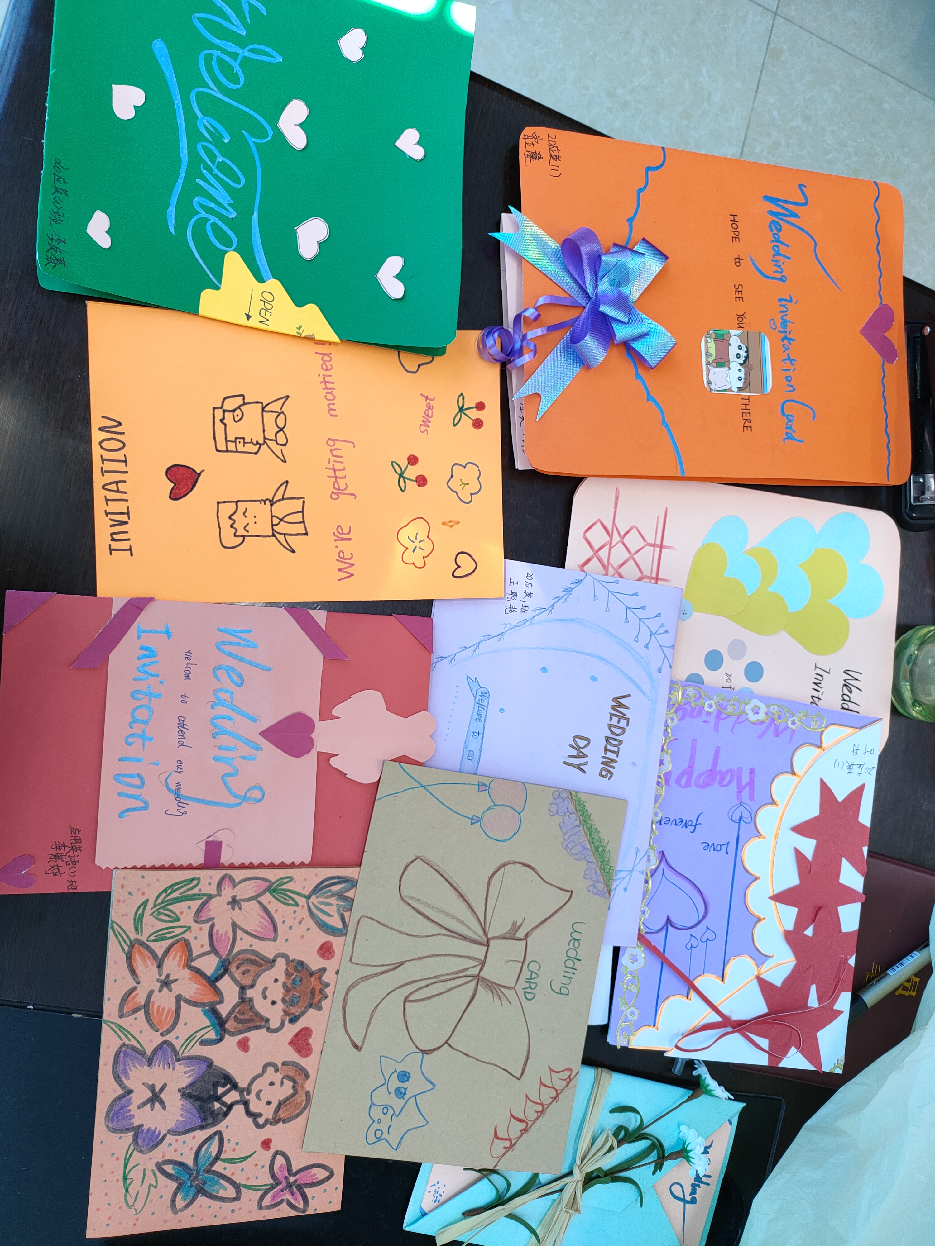 活动过程中,同学们积极参与,各展所能,做工细腻而富有创意;各种纸张、彩色笔等工具在同学们的精心制作下成了一件件别具匠心、令人夸赞不绝的手工请柬,诠释了本次活动的主题,扩展了学生的发散思维和动手实践能力。让我们感受到同学们的创作热情,和同学们一起体验到成功的喜悦。