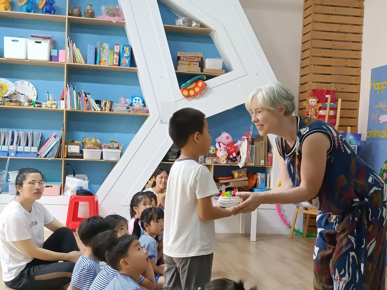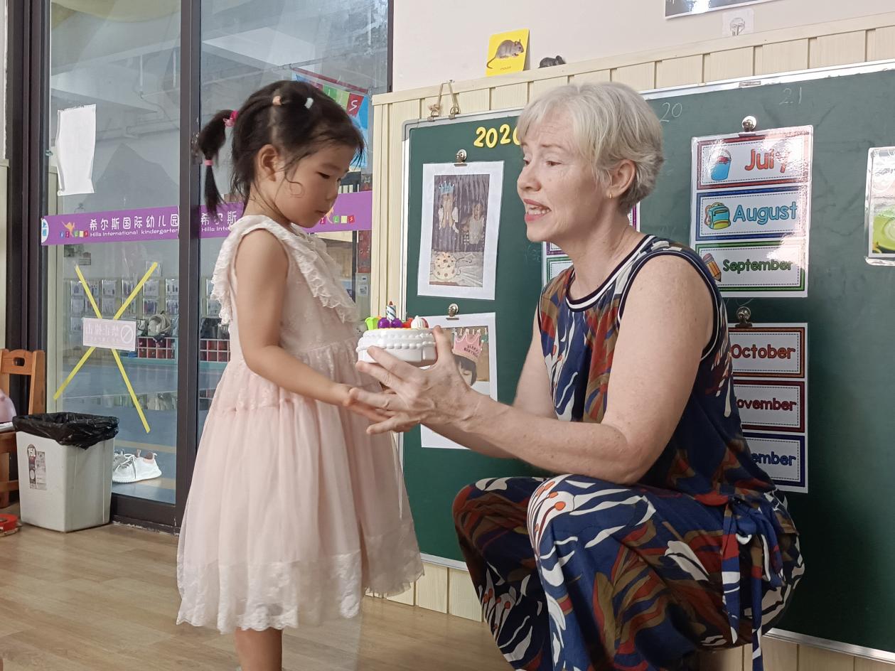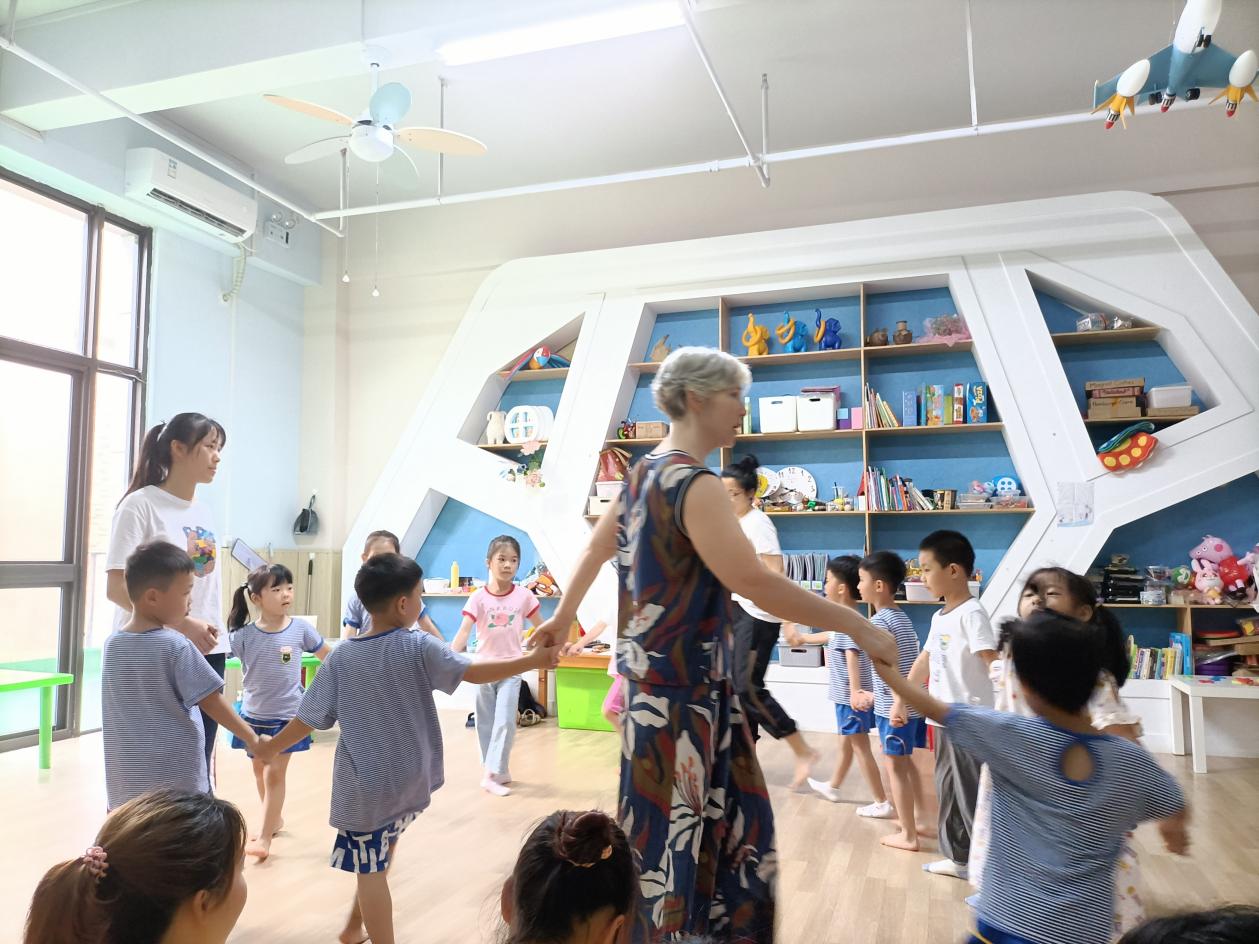 为了给同学们做一次良好的教育教学引领示范,唐园长给同学们安排了一节外教课。在这节课堂活动中同学们学会了如何在上课前跟小朋友们互动,如何通过各种方式把小朋友们的注意力都集中在教学内容中。这节精彩的外教课充分体现了希尔斯幼儿园以幼儿为主体的教育教学理念。