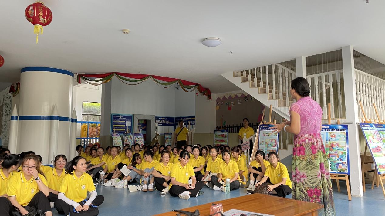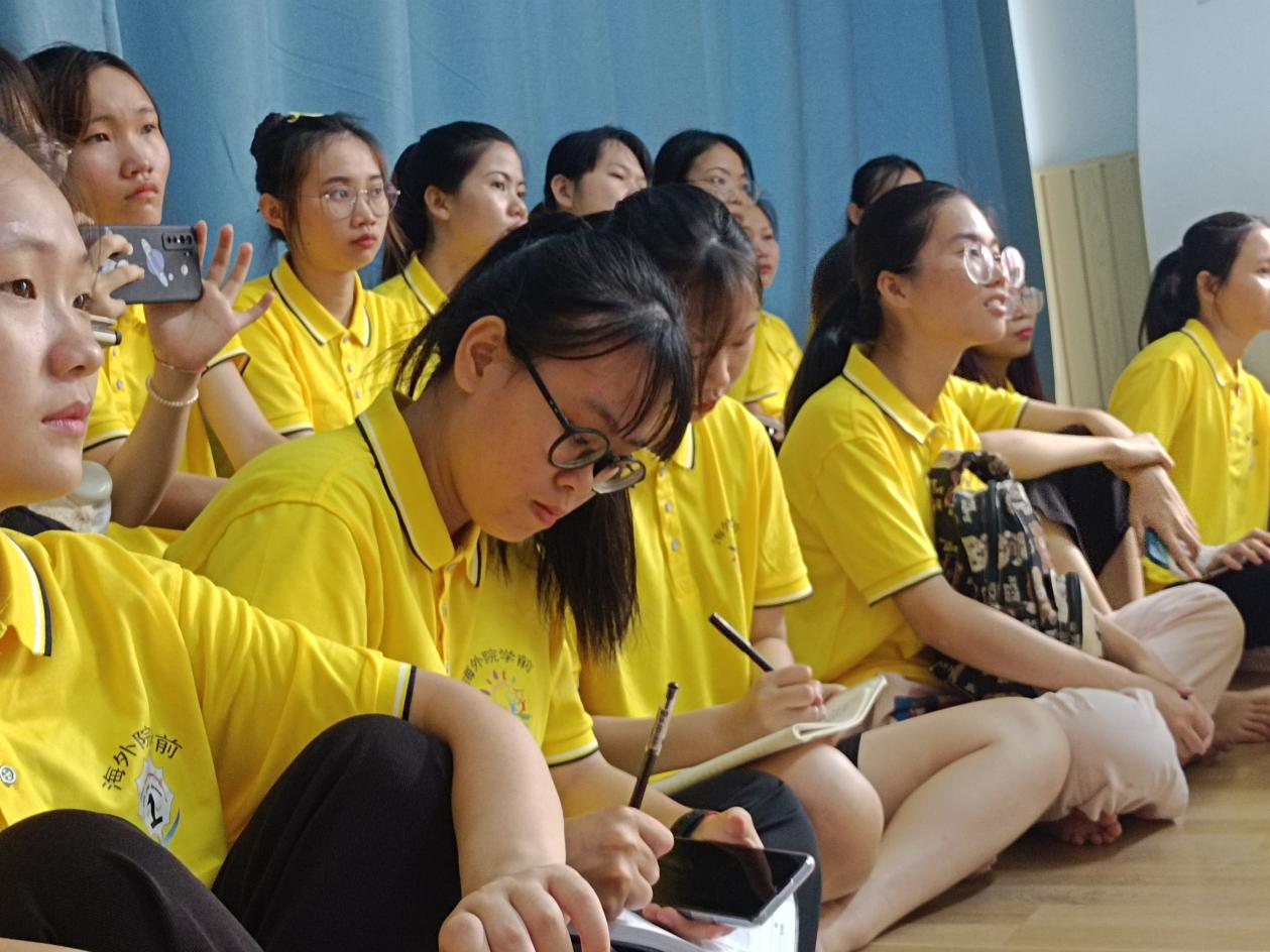 在下午的座谈会上,同学们集中坐到一起,大家互相交流心得,倾听唐园长介绍了幼儿园的基本情况、办学理念。经过一天的学习和实践,同学们不仅初步了解了幼师的岗位职责,还与可爱的孩子、班级老师之间建立了深厚的友谊,感受到了大家庭的温暖。