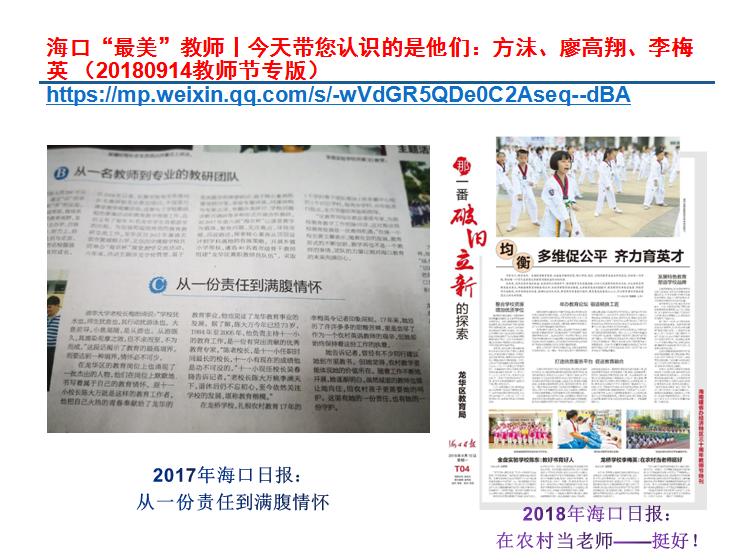 讲座中,李老师讲述了她自己在农村学校从教20多年来的故事,分享了她的教学成长、班级管理、学生德育教育故事以及用心从教的种种收获,还分享了海口市电视台对她的特别采访栏目。李老师的话语里充满了对乡村教师岗位的深情厚爱和浓厚的教育情怀,感动了在场的每位师生。