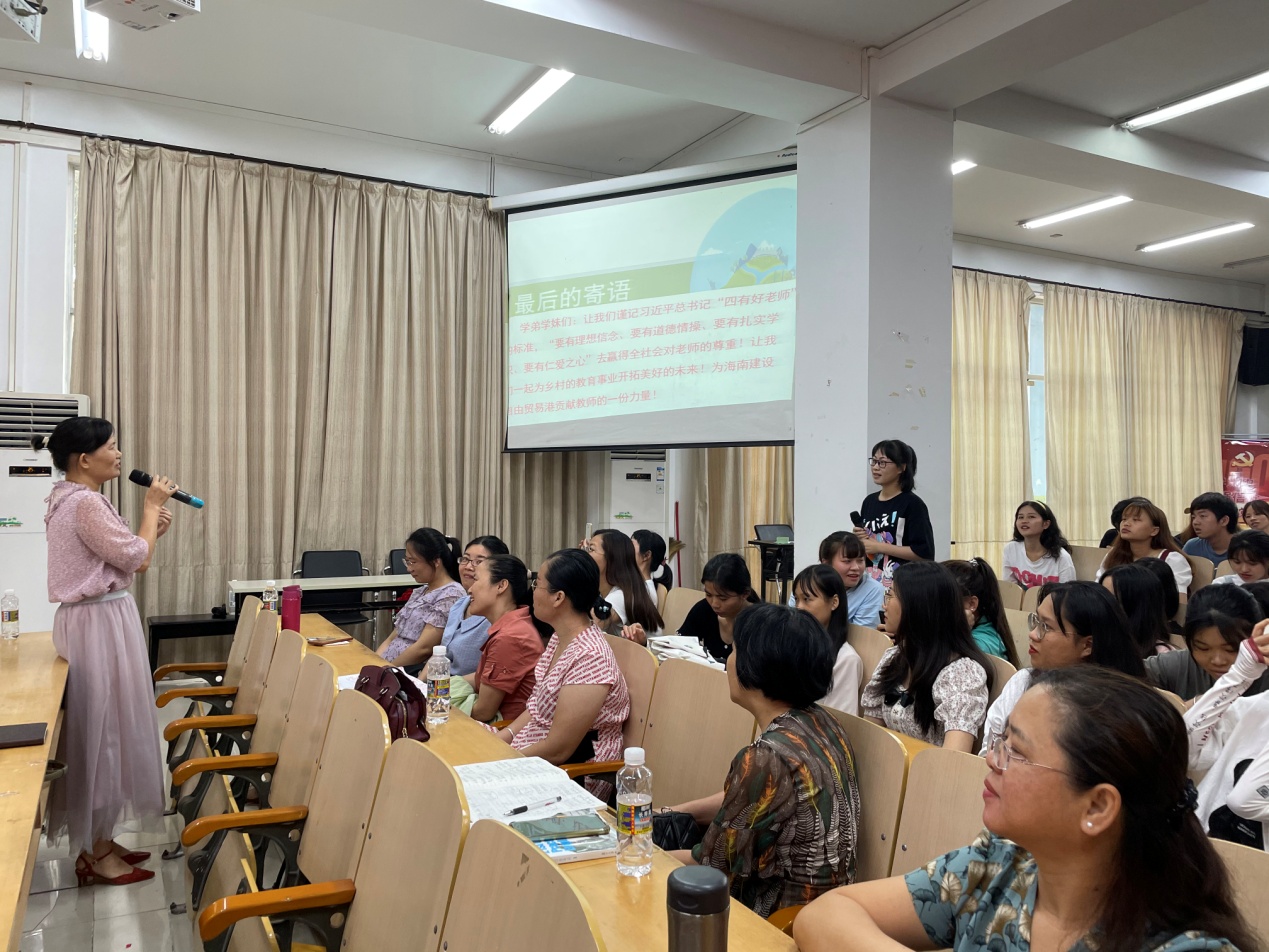 最后,李梅英老师以送给学弟学妹们寄语结束了讲座:“让我们谨记习近平总书记‘四有’好老师的标准,争做‘四有’好老师,赢得全社会对老师的尊重!让我们一起为乡村的教育事业开拓美好的未来!为海南建设自由贸易港贡献教师的一份力量!