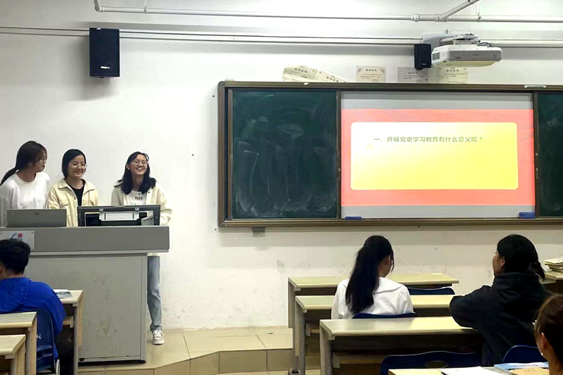 班会围绕“开展党史学习教育的意义”“大学生为什么要学习党史”“大学生如何学习党史”等三个方面详细展开。同学们准备充分,通过PPT讲解、视频展示、学生问答等多种形式回顾了中国共产党党史发展脉络,讲解了中国共产党领导全国人民从站起来、富起来到强起来的历程。