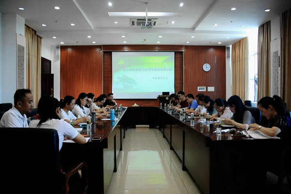 7月10日下午,英语系党总支在七楼第二会议室召开“我为加快推进海南自贸港建设作贡献”学习交流会。会议由英语系团总支书记冯琛主持,英语系全体党员参加会议。