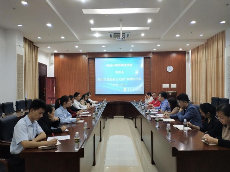 12月13日,英语系在综合楼七楼第二会议室召开了师生代表团赴台湾明道大学交流行前教育会议。会议由英语系张清萍主任主持,我院杨学前副院长、英语系党总支林鹏书记、国际交流中心潘立鹏老师、我系各教研室主任、辅导员及赴台的9名师生出席会议。