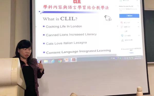 欢迎仪式后,双方代表团进行了题为“翻转英语教学”的座谈。台湾明道大学应用英语学系主任赖意平展示了她在英语课堂教学中的一些具体做法,传授了宝贵的教学经验,并组织学生现场演练课堂活动组织方式,让人受益匪浅。