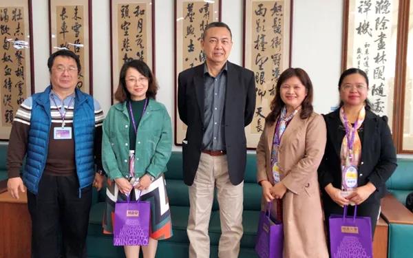 在台湾明道大学交流期间,英语系代表团受到了该大学校长汪大永的接见。汪大永校长对我院英语系师生此行交流表示了欢迎,并高度称赞了交流的积极意义,表示愿意乘海南自由贸易区(港)建设的东风,遵循已经与我院签订的备忘录内容,在旅游管理、餐饮管理、应用日语、资讯传播、中国文学、景观设计等相关专业与我院进一步开展广泛交流与实质性合作办学。