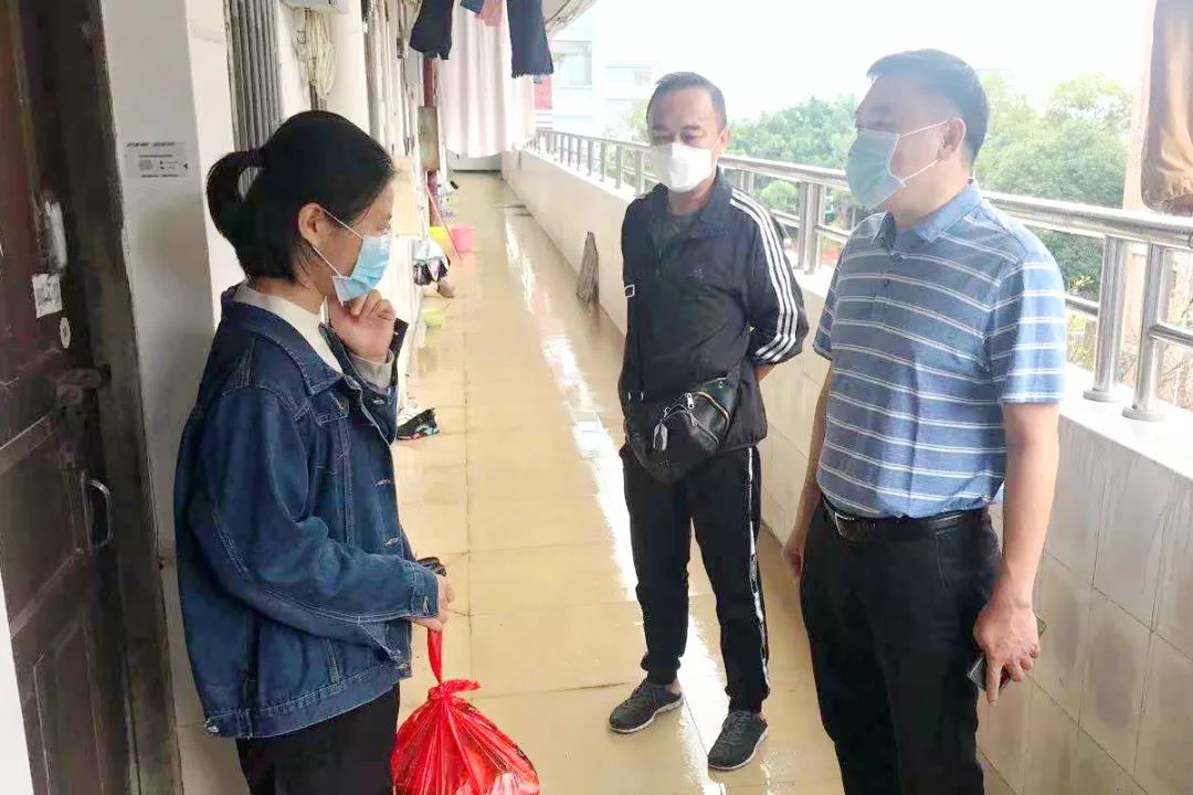 2月11日,英语系党总支副书记吴清晖、学生科长钟大强、学生宿舍管理负责人邢谷鑫到学生宿舍看望慰问了我系6名留校学生,并为同学们带去了牛奶和水果等爱心礼包。