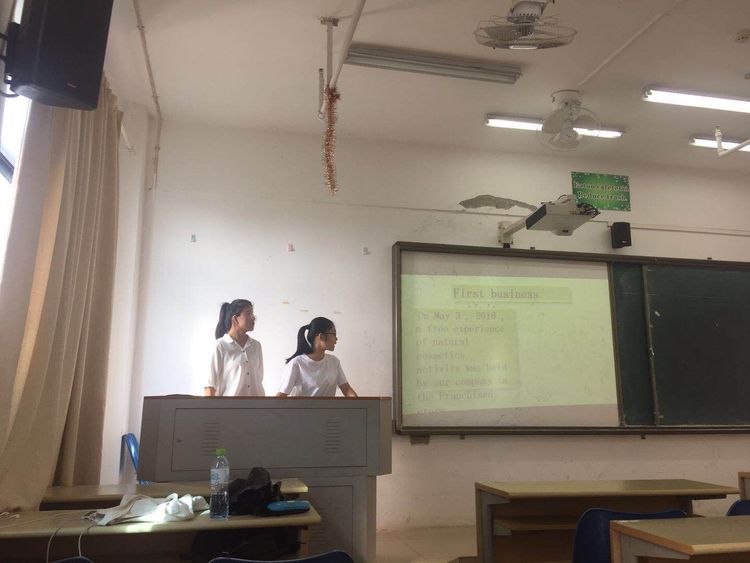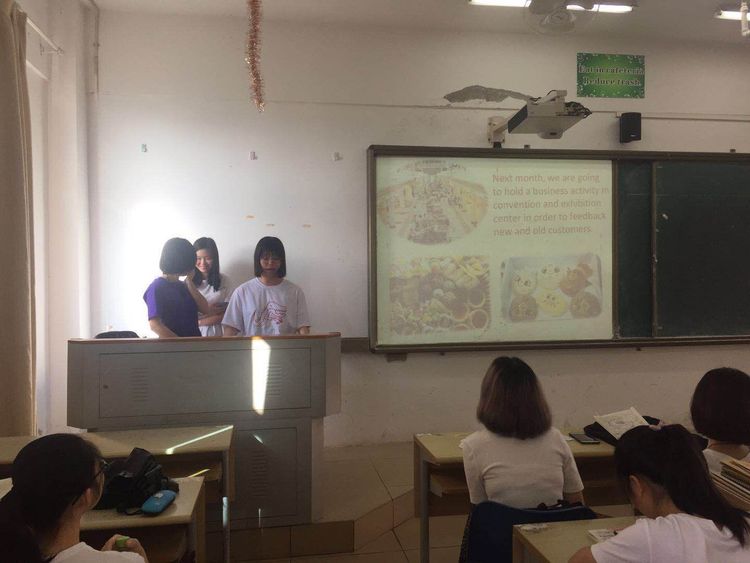 为了营造良好的学习氛围,激发同学们对商务知识的兴趣,增强同学们将实践与学术相结合的能力,开拓同学们的视野,我系17级翻译一班和二班的学生于11月13日上午在AE504教室举行了商务技能展示活动。