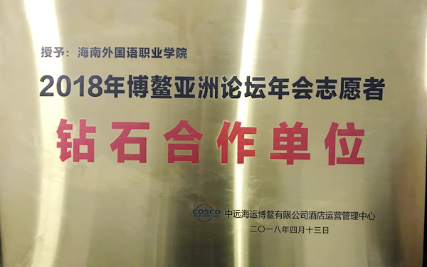 学院获颁“2018年博鳌亚洲论坛年会志愿者钻石合作单位”