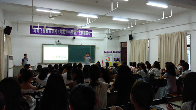 5月9日下午,海南飞雁教育服务有限公司《瑞思学科英语》团队在我院AE101教室进行了企业理念宣讲活动。来自我自的15级少儿师资班共86名学生参加宣讲会。