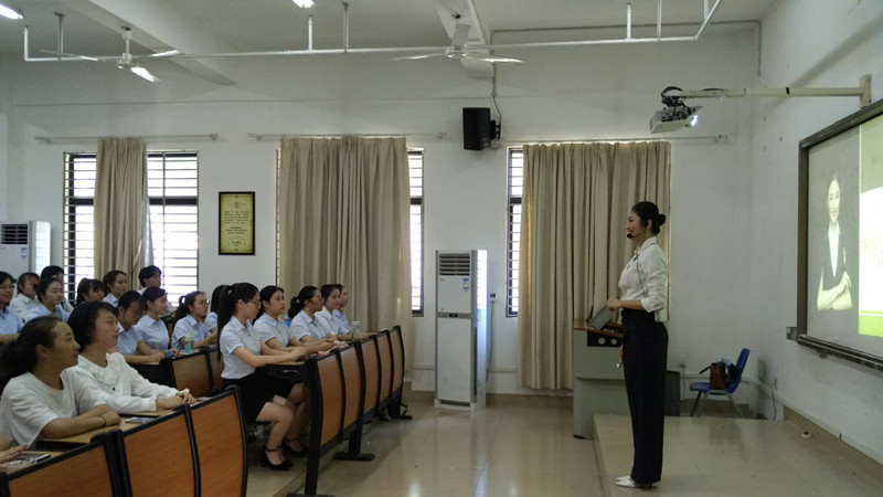 为培养学生良好的礼仪习惯,养成高尚的思想道德素质,以更好的面貌迎接未来职场生活,我系于5月7日在第AE101开展商务礼仪主题讲座。 这次讲座我们邀请的是英语系2015届毕业生符小敏。符小敏目前是南方航空头等舱乘务员,海南省空乘金牌培训师,国家高级形象礼仪讲师,个人形象美学设计顾问。
