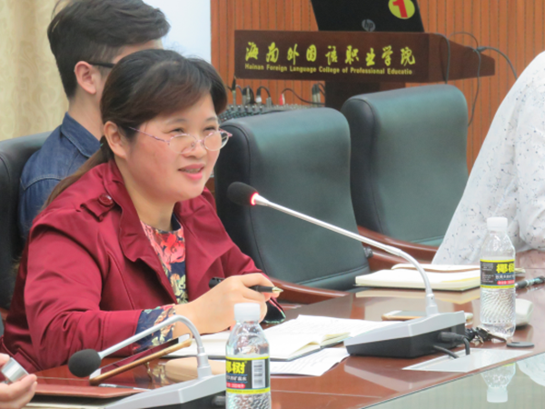 首先,各教研室主任轮流汇报总结本教研室活动进展的情况依次为基础(一)教研室郑一新主任、基础(二)教研室陈春妮主任、翻译教研室翁天月主任、涉外事务教研室陈雁主任、少儿师资教研室金龙英主任。汇报过程中,一项项让大家印象深刻的活动被以PPT形式展示在大家面前,包括英语故事演讲比赛、英语情景描述比赛、英语辩论赛、模拟面试、礼仪操展示及英语趣配音等等。