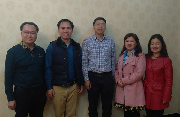 澄迈县常务副县长周领军(中间)、教科局局长王文范(左一)与我系教师合影