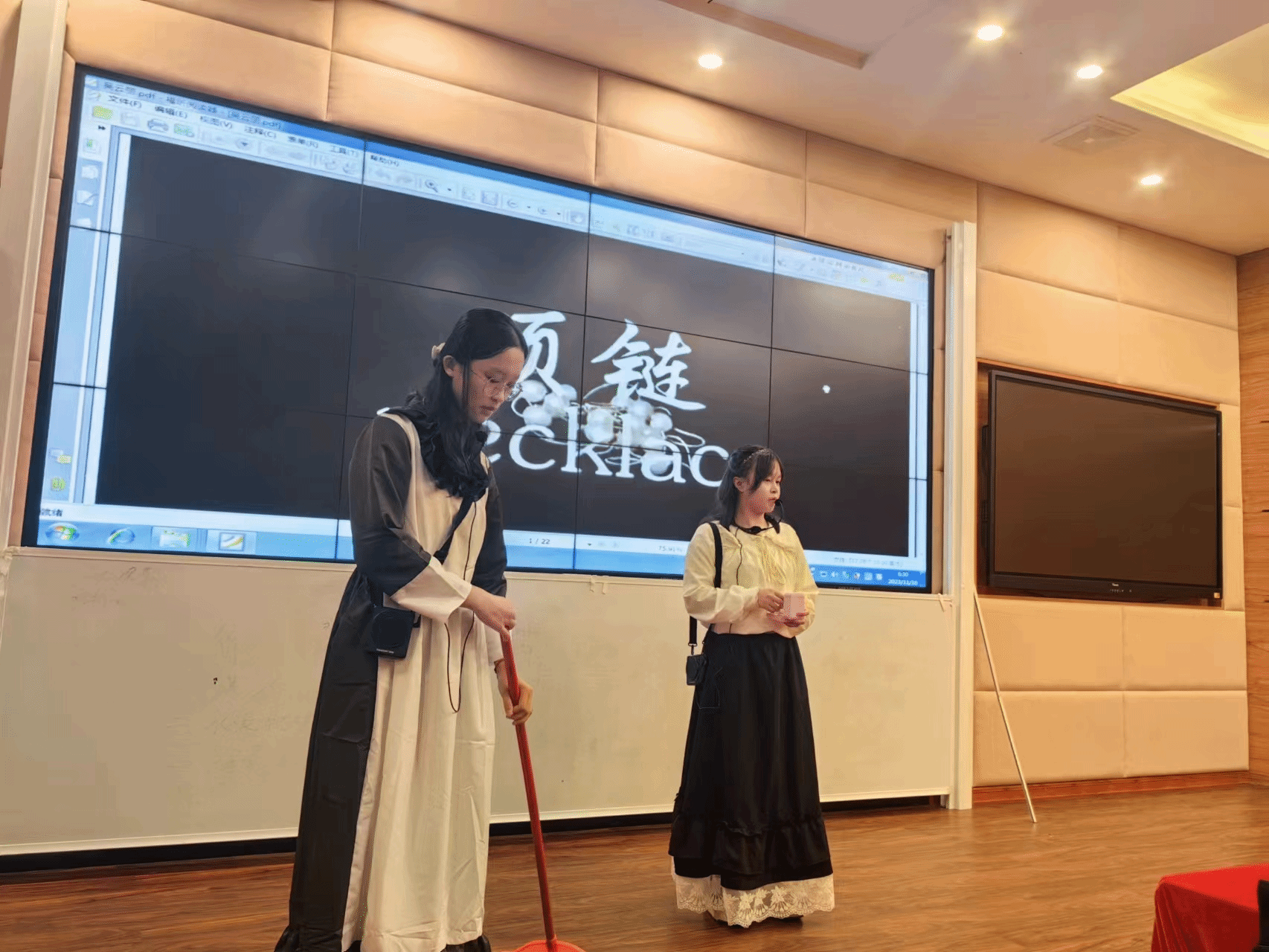 11月16日上午,英语学院在沉浸式教室举行了英语话剧比赛活动。本次活动目的是激发和培养学生学习英语的兴趣,帮助学生掌握标准的语音和正确优美的语调,提升学生的英语口语表达能力,培养学生的团队合作意识,促进学生养成良好的学习习惯。五年一贯制21英教501班全体学生参加了比赛。为了在此次比赛中能够完美的呈现作品,各小组从选取话剧题目、组织排练到确定服装道具等一系列的工作,同学们在赛前做了充足的准备,同学们对此次比赛活动充满了期待。