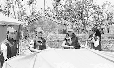 文昌团市委书记雷珉介绍,抗击“威马逊”期间,他们组织起150多人的志愿者队伍,服务遍及重灾区。这一次,团市委又通过报纸、电视台、微信招募志愿者。100多人赶到台风登陆点附近,分4个小组,帮村民搭帐篷,清扫垃圾,搬运救灾物资。“她们的出现,不仅身体力行地帮助了灾区群众,更是一种精神鼓励。她们是活力的象征,是最美丽的风景。”雷珉说。