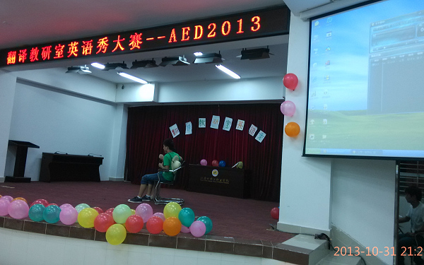 2013年10月31日万圣节之夜晚上8点,翻译教研室英语秀在多功能报告厅拉开序幕。