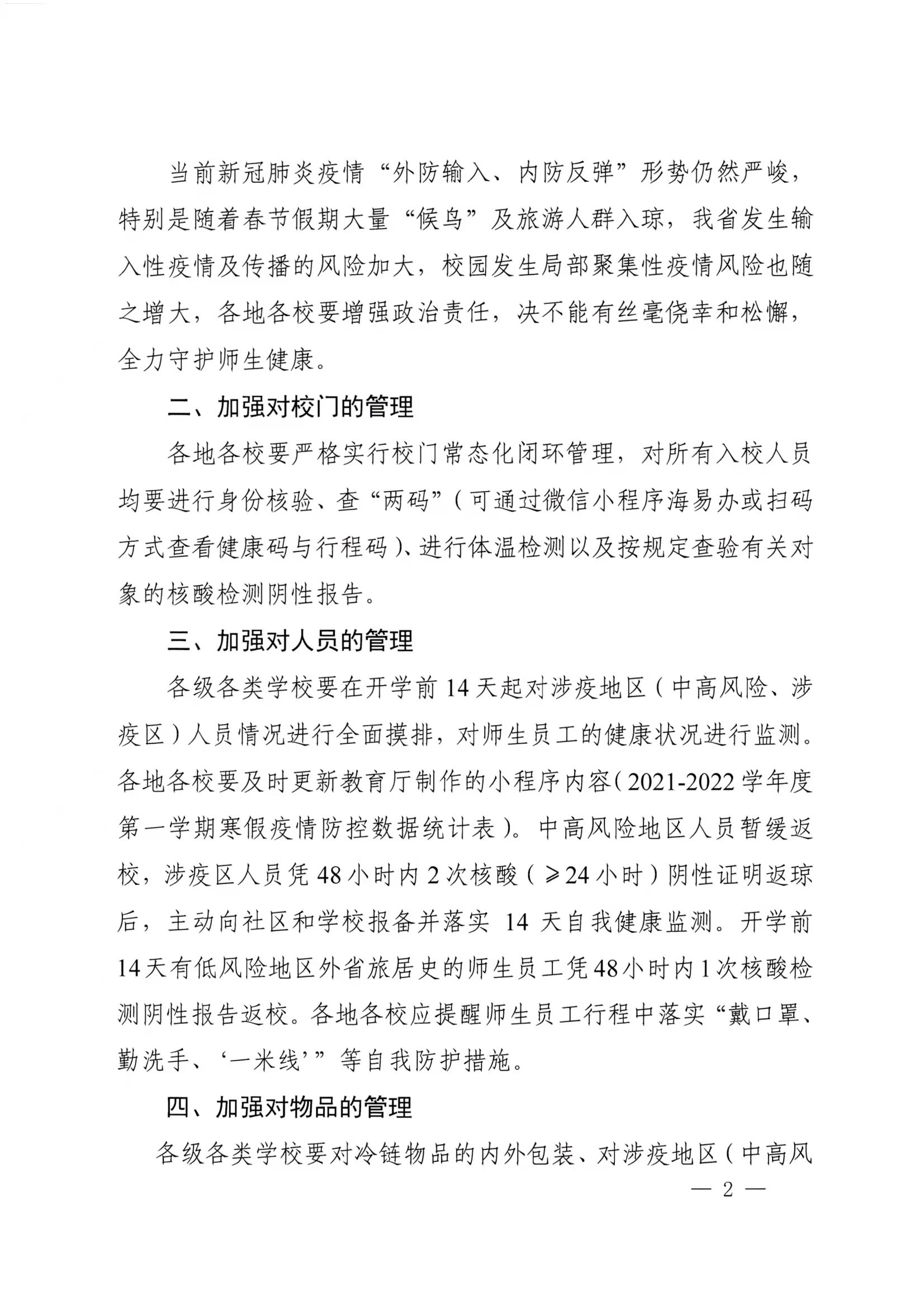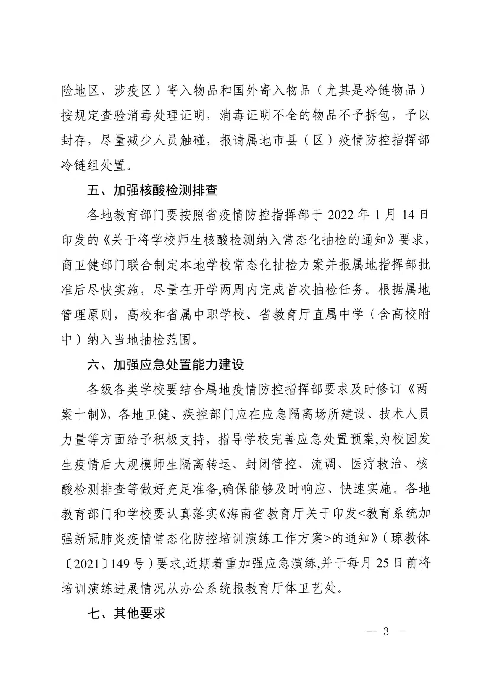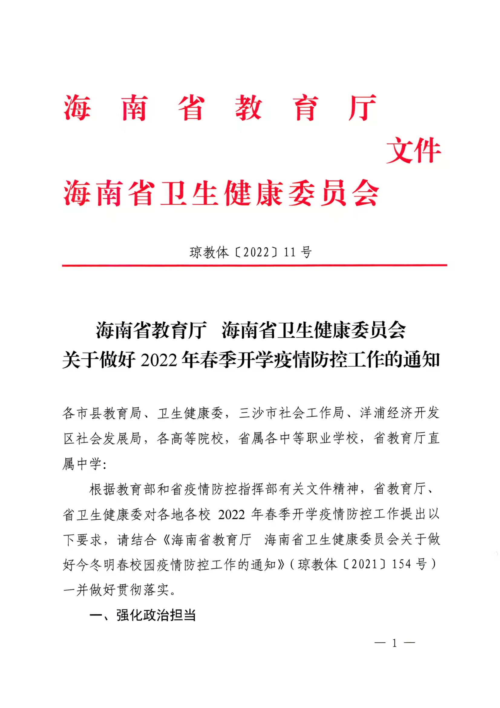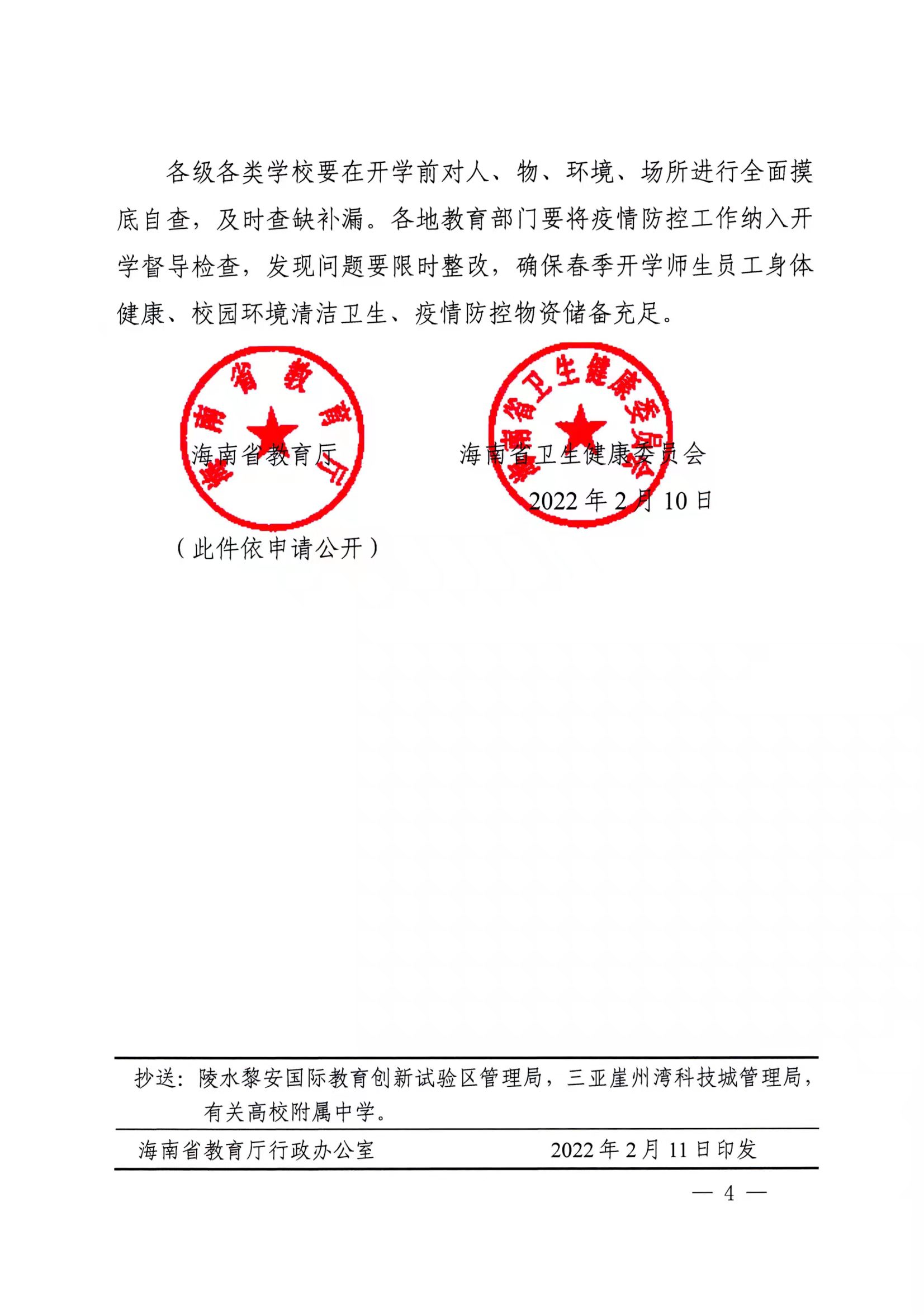 海南省教育厅海南省卫生健康委员会关于做好2022年春季开学疫情防控工作的通知