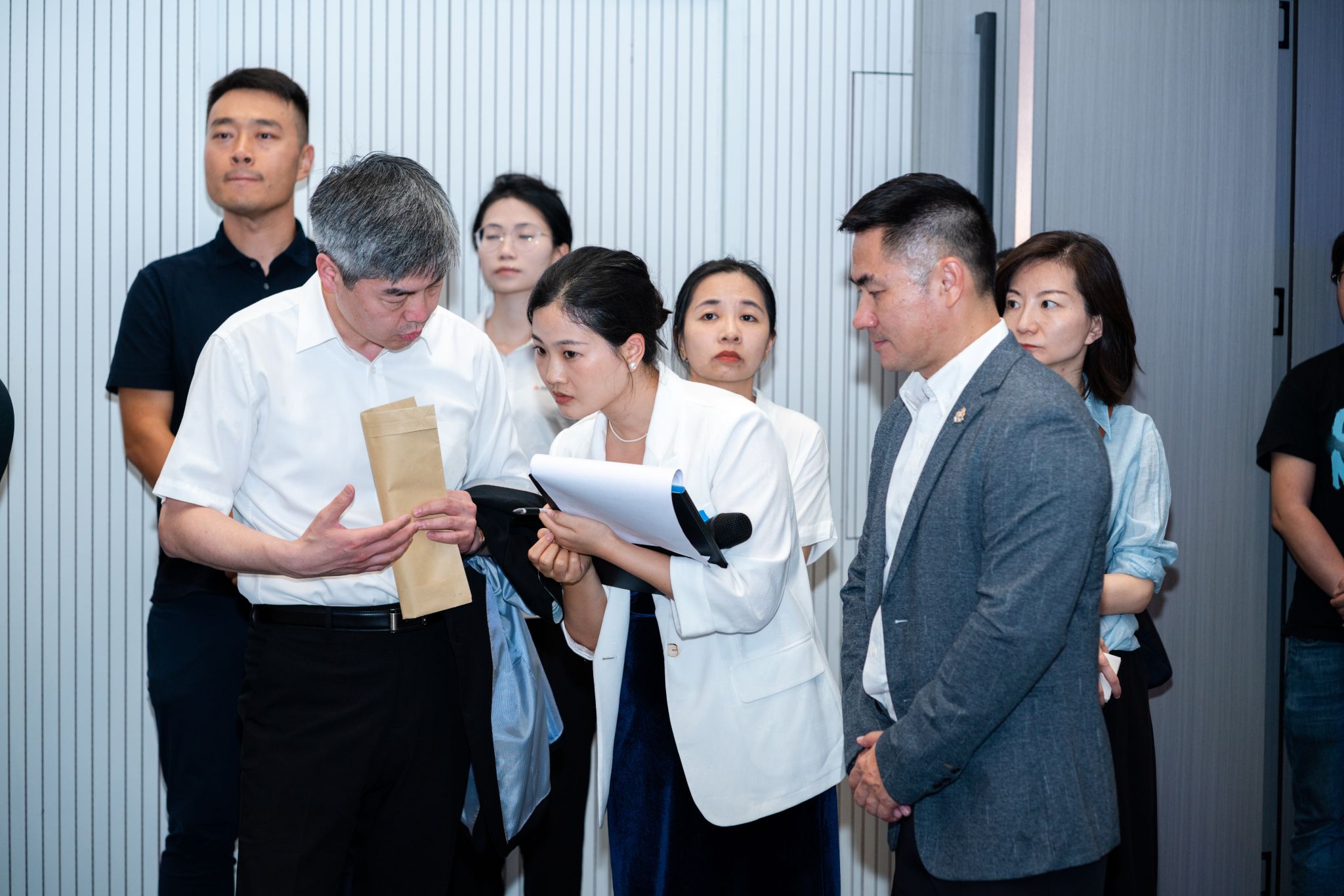 黎娅玲老师和文昌航天超算中心叶世阳董事长进行讲话前翻译沟通