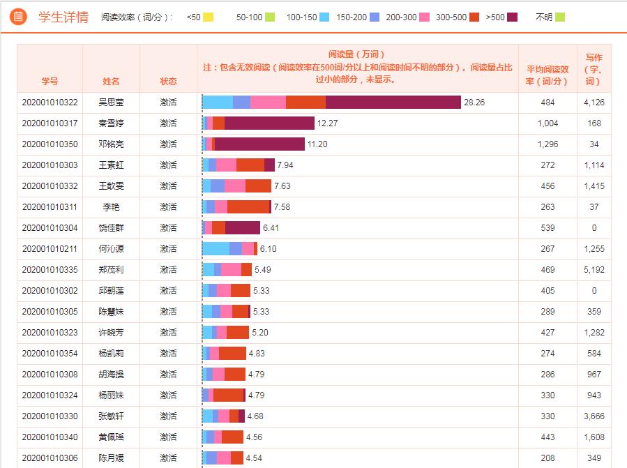 △学生详情(包括阅读量、阅读效率和写作情况)
