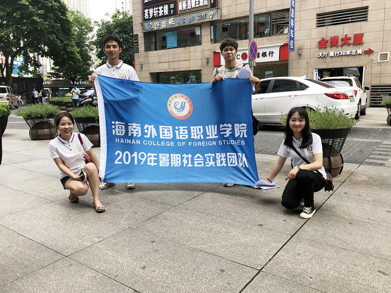 △张鑫(左二)在暑期社会实践中宣传环保理