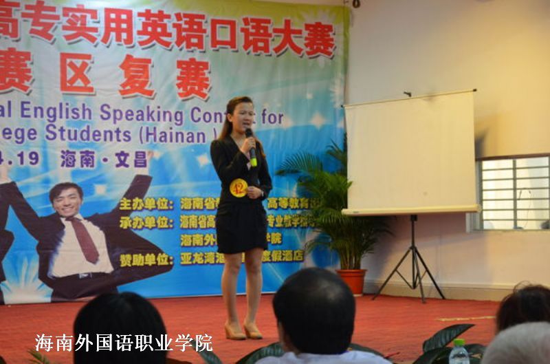 我系选手郭娃,来自10涉外文秘1班,获得第九届全国高职高专实用英语口语大赛海南赛区专业组冠军